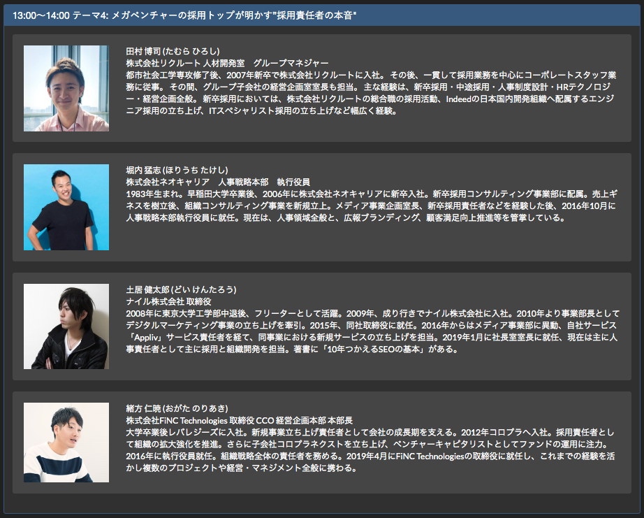 今回、弊社取締役 人事責任者の土居が「メガベンチャーの採用トップが明かす”採用責任者の本音”」というテーマでパネルディスカッションに登壇しました。
